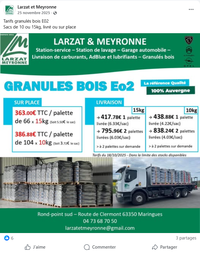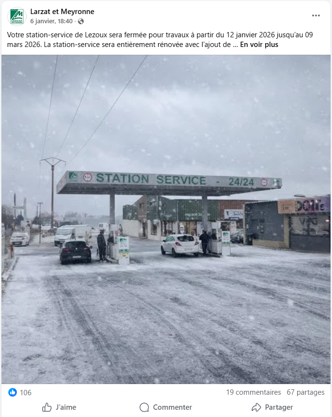 Larzat et Meyronne, garagiste, livreur de carburants et deux stations-service près de Riom